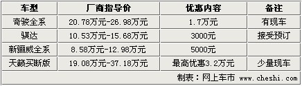 买断150台天籁回馈广大辽沈车友最高优惠32000元,目前还有少量买断天籁预购从速。奇骏全系优惠17000元,有现车。
