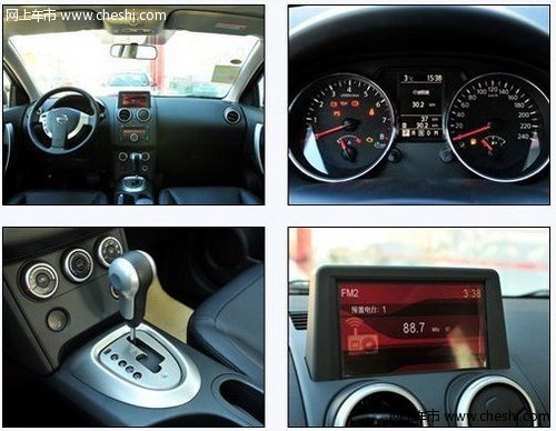 逍客的内饰带有明显的日产家族风格,中控台和日产奇骏非常相似,让我们非常熟悉,上深下潜的颜色提升了内饰动感效果,方向盘、仪表盘、中控台采用银色装饰条点缀简洁而时尚。三幅式的方向盘左上策侧为多媒体控制区域,调节音轨采用拨片的方式,操作起来很方便。仪表盘周围用铝制装饰,现代感十足。中控台面板布局简洁时尚,圆形的出风口设计,看起来像是两只大眼睛,可以360旋转出风角度,还有专门的车顶出风按钮,很能讨女性消费者青睐。音响控制面板按键,和自动空调旋钮,阻尼感非常好,又不至于特别紧,档位也很清晰。