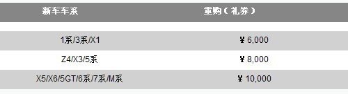 网上车市榆林分站讯:2011年4月1日至12月31日,BMW推出重购优惠方案,让您轻松重购钟爱的BMW。现有BMW或MINI车主及其直系亲属在活动期间重购BMW新车,无论是否置换旧车,都可以获得重购活动礼券(见下表)。