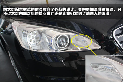 前大灯配合主流的前脸放弃了外凸的设计,变得更加温顺与低调,只不过大灯内部灯组的精心设计还是让我们看到了属于法国人民的浪漫。远光和近光都布置在同一个透镜下面,并且都是氙气的,或者说采用的双氙气前大灯,另外,后面梅花形状的圆形LED灯组给人以活跃与时尚的感觉,它就是在欧洲要求必须配备的LED日间行车灯,508将它以这种形式集成在大灯灯罩内,还是非常个性与新潮的。