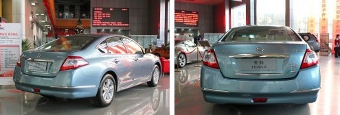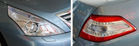 前雾灯仍为椭圆形内凹式设计,但雾灯旁边的轮廓改为分离的平行四边形。此外,2011款新天籁的前大灯增加了透镜,聚光效果得到提升,尾部设计也出现了一些明显的变化。尾灯采用了全新设计,老款车型以红色为主色调的灯罩被换成透明的风格,2011款新天籁与老款相比整体外观得到了进一步提升,看上去大气、沉稳。