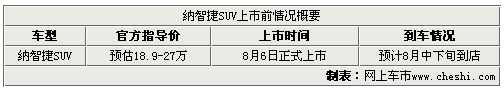 纳智捷SUV预售18.9-27万 8月中下旬到店