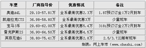 据北京地区奥迪销售人员介绍,目前2011款奥迪A4L 2.0T尊享型现金优惠高达2.3万元,展厅现售价仅为44.82万元。现车数量有限,售完为止。另外,店内还提供免费新车置换服务,通过置换方式购车的客户可额外赠送全年车辆保险。对奥迪A4L感兴趣的朋友,不妨致电经销商咨询详情。