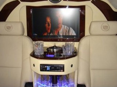 新款凯迪拉克总统一号车型还搭配了真皮木纹可调节多功能方向盘,使得驾驶者在驾驭这也款车型也能极为顺手,内部还配备了真皮桃木内饰,高级地毯,高级豪华的异域吧台,带来梦一般的境界;LED高清液晶电视,前后可视影像系统,侧面2个7寸液晶显示屏,高级数码家庭影院娱乐系统,这一切似乎无言地诉说着“总统一号”室内的至尊与豪华。