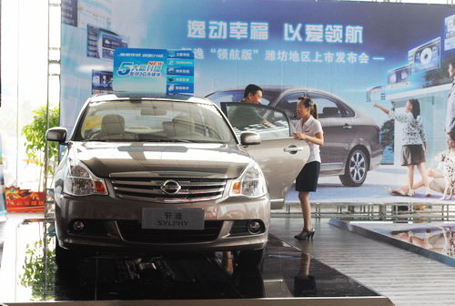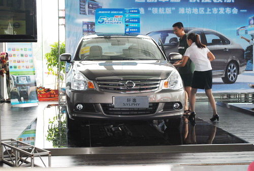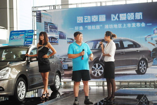 【潍坊网上车市讯】7月24日,新轩逸领航版在东风日产潍坊百大天达4S店上市,这次上市的轩逸领航版搭载了“3G多媒体导航系统”,不仅集合了卫星导航、倒车影像等多项实用功能,让驾乘变得更加便捷、省心,更令人惊喜的是该系统还可外接3G上网卡,轻松实现3G在线娱乐、网上冲浪、互动影音等丰富的娱乐功能,使驾乘者尽享数字化资讯娱乐行车生活?;疃碧?,前来赏车试驾的客户络绎不绝,整个展厅人流涌动。