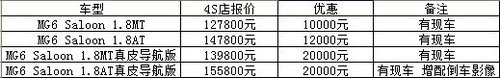 MG6是一款上汽面向全球市场设计、生产和销售的自主开发新车型。凭借流线型的外观设计和运动感十足的轿跑车风格受到很多朋友的关注。今年年初,上汽又推出 MG6的三厢版车型——MG6 Saloon。这款新车也是上汽MG品牌的首款中级三厢轿车。近日,据网上车市编辑在苏州颐成汽车销售有限公司了解到,MG6全系优惠,最优惠2万元。具体详情参考下表: