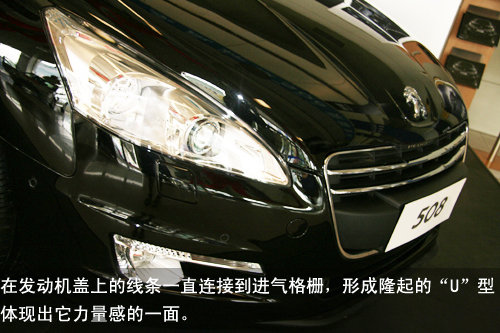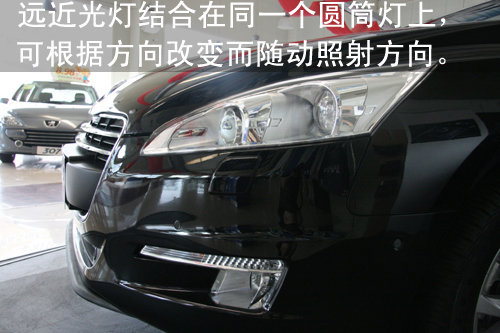 相比标致旗下其它车型,国产508的前大灯在造型设计上并不算犀利,不过双筒大灯涵盖的功能也不少,远近光灯结合在同一个圆筒灯上,可根据方向改变而随动照射方向,加上弯道补偿照明配置,有利于提高夜间行车的安全性。另外一圆筒灯是昼夜行车灯,相比起其他品牌的日行灯显得有得另类。