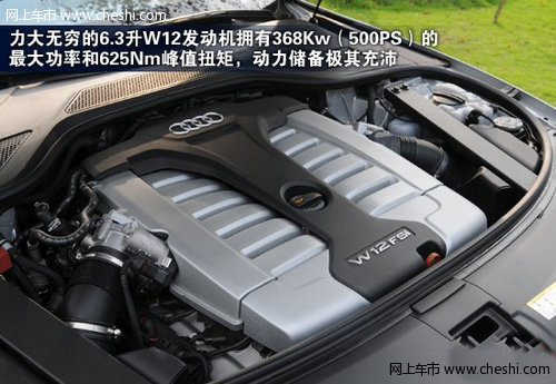 全新奥迪A8L W12车型搭载了6.3L W12 FSI汽油引擎,在功率、扭矩、百公里加速以及污染物排放指标等方面,都进行了大幅提升。A8L W12发动机在设计上采用与众不同的“W”型排列:4排气缸,每排3个气缸,呈W型排列。从车头向后看去,整个引擎分为左右两侧,每侧的2排气缸呈V型15度夹角,两侧之间又呈72度夹角。这种全新的设计,解决了由于缸数多而带来的发动机空间的局限,使得它的体积比传统的V12发动机更加紧凑。W12发动机整体长度少于50厘米,而宽度与高度也只有70厘米。