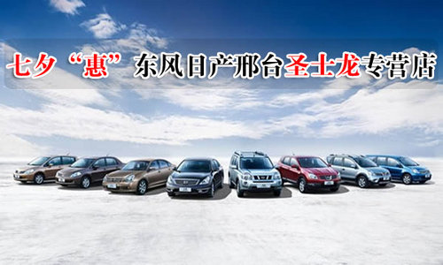 【网上车市邢台讯】近日,网上车市编辑从东风日产邢台圣士龙专营店了解到,在即将到来的七夕之际,店里将举行:七夕“惠”,8月6日-7日到店购车就有最高4999元精品大礼包赠送,但是此次活动遗憾的是没有新骐达和阳光,机会难得赶快来参加!