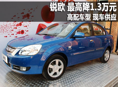据该店销售人员介绍,目前锐欧1.4L标配车型现车充足,颜色齐全。售价方面,近期购车最高可享受1.3万元的优惠,与之前相比优惠幅度有所增加。其中,手动档车型现仅售6.58万元;自动档现售价为7.18万元。感兴趣的朋友,不妨致电经销商咨询更多详情。