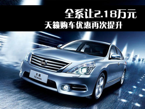 据东风日产销售人员介绍,目前2011款天籁有现车较多,购车不仅可以享受现金2.18万元的优惠,增配纪念版车型最高还可优惠3.28万元。