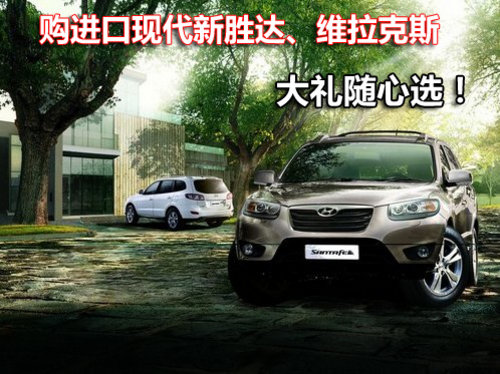 小编从沈阳南星行进口现代4S店得知,为庆祝进口现代在中国市场SUV销量突破10万辆,特实施客户答谢活动。即在活动期间,凡到店购买新胜达的用户,可享受两种大礼二选一的优惠方式,购买维拉特斯的用户,即可享受8000元定额支援保险。