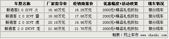 近日,记者从东风日产沈阳新世纪专营店获悉,目前逍客全系均优惠现金2000元,还有为了回馈一直支持新世纪的新老客户,除在现金优惠的基础之上,我们还为客户准备了新车必备精品礼包和1000元小礼包两项的折扣让利活动,详细请见下表: