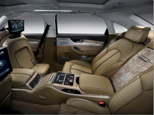 顶级豪华车的拥有者一般都习惯于坐后排,因此新A8L W12版将它加长的13厘米轴距全部贡献给了后排乘客,把后排乘客的头部、肩部、膝部、脚部空间都做到极致。同时还提供全景天窗、带有电动遮阳帘的后风挡与后车门等,并且还配备了升级版的豪华头枕、后排座椅前后移动功能、豪华4温区自动空调以及强度与模式组合可调的充气按摩座椅等,使得内部空间就像是一座移动中的宫殿。