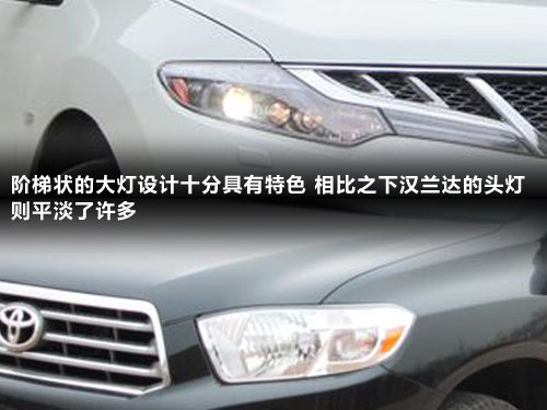 楼兰的前脸造型十分具有特点,设计为“鹿角”式的进气格栅,使其在动感前卫的同时更增加了几分活力。相比之下汉兰达直线式的格栅则显得沉闷古板,并不吸引眼球。而且楼兰的前大灯设计也是其一大亮点,阶梯状的造型与鹿角式的格栅使得前脸具有相当强的层次感。