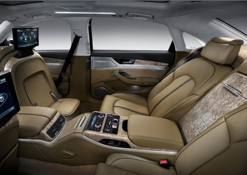 全新奥迪A8L W12的车内呈现出犹如行宫般豪华的氛围。全新奥迪A8L W12的内饰设计风格典雅,做工精良,符合典型的奥迪设计理念。“环抱式(wrap-around)”内饰理念结合了优雅的设计风格和出色的人机工程学,材质的选择、控制键的设计、以及缝隙的控制都达到至臻完美的境界。