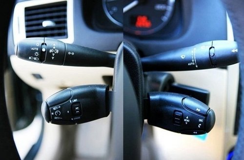 408多功能方向盘的样式与众不同,他的控制按钮并不像大多数车那样设计在方向盘正面的两侧,而是以操纵杆的形式位于方向盘后,转向灯和雨刷器的位置上。