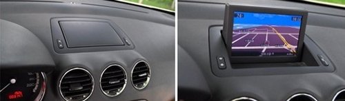 中控台上方安装了一个可以翻折的液晶屏幕,并且通过左边的按钮可以调节成任意角度,不仅可以避免因为身材和坐姿造成的角度误差,而且十分显档次,当屏幕从平平的仪表台上翻起的时候,肯定会让车上的朋友们称赞不已的。