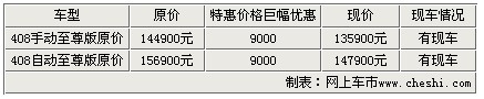 中联标致408 2.0至尊版优惠9000现金!