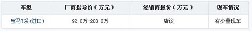近日,小编从浙江金湖宝马4S店了解到,店内推出BMW 7系尊享日活动,多重购买优惠,让您轻松拥有BMW 7系。购车享7重礼遇,具体报价见下表: