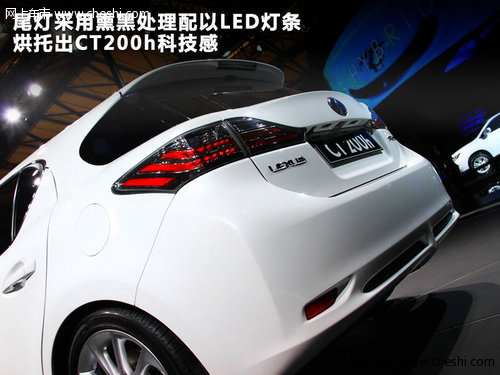 雷克萨斯CT200h车尾设计与车头相呼应,同样采用了可让视觉停留于正中央的设计。扰流板完美的与尾部融合到一起,简洁、大方、美观、时尚。同时CT200h还给人一种很敦实的感觉。