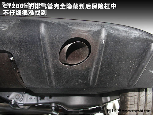 雷克萨斯CT200h的车尾下方,较原型车LF-Ch概念车多了一组来自F1赛车底盘、可导引底盘气流的分流器,且保险杠下方的设计相当特别,排气管隐藏于保险杠内。