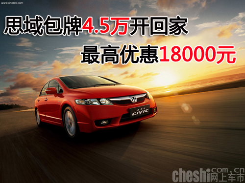 据鑫广达东风本田销售人员介绍,9月8-10日北部湾车展期间,中级精品车思域包牌4.5万就可开回家,最高优惠18000元,喜欢的朋友不要错过了。