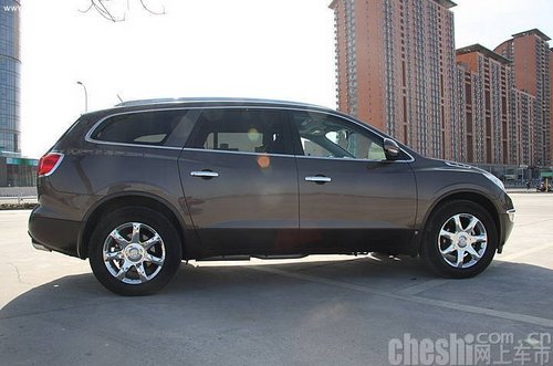 外型上,“三盾”车标镶嵌在别克品牌标志性的直瀑式水箱护罩中央,在发动机罩萨还能够还安装有“Buick舷窗”,非常特别。前大灯采用了高强放电(HID)照明技术,并能够随着前轮的方向进行转向照明,大大提高了夜间行车安全。此外,别克Enclave的车身比例也很大胆,轮距很大,车轮被移到四个角上。这使设计师能够将整个车身“包裹”在四个车轮上,加上宽大的21英寸七辐轮毂,大大增强了车辆行驶稳定性。