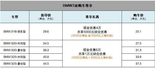购BMW 3系最高现金优惠6万+1万元综合优惠;