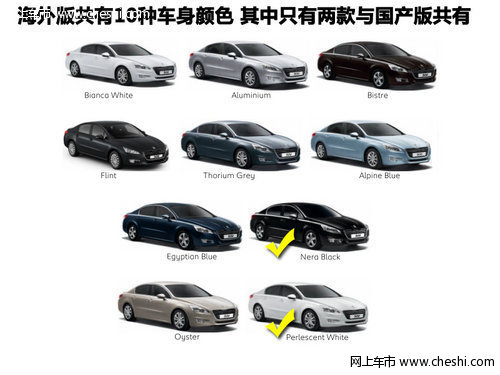 在车身尺寸方面,两车在长度上差距相对最为明显,国内版达到了4826mm,比海外版长了34mm,加上其他方面的相差无几,国内版车型显得更加修长一些。另外,海外版508共有10种车身颜色可供挑选,而国内相对较少只有4款,其中碳晶黑与珠光白两个版本均有提供。