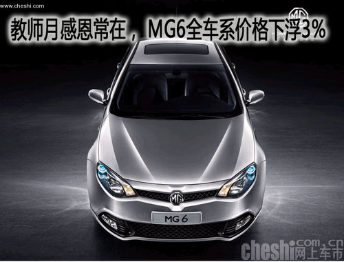 MG6是一款上汽面向全球市场设计、生产和销售的自主开发新车型。凭借流线型的外观设计和运动感十足的轿跑车风格受到很多朋友的关注。今年年初,上汽又推出 MG6的三厢版车型——MG6 Saloon。这款新车也是上汽MG品牌的首款中级三厢轿车。近日,编辑从上汽MG佛山荣骏获悉,9月是教师月,感恩常在!现购MG6全系列车型下浮3%,详细可参考下面表格: