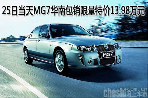 据荣骏南海直营店销售人员介绍,9月25日当天,佛山荣骏举办MG3 Xross店头赏车会的现场推出优惠,MG7华南包销限量特价13.98万元,更多优惠信息可到店咨询。