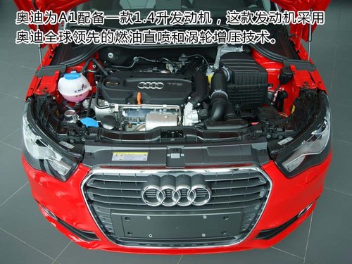 奥迪为A1配备一款1.4升发动机,这款发动机采用奥迪全球领先的燃油直喷和涡轮增压技术。配合领先的奥迪高效??榧际?,使A1具备强大的动力,同时油耗极低。1.4 TFSI发动机最大输出功率达到90千瓦(122马力),当转速达到1,500~4,000转/分钟时,可持续输出200牛•米的最大扭矩。配合7速S tronic双离合变速器,奥迪A1从静止加速到100公里/小时仅需8.9秒。最高限速为203公里/小时。每百公里平均油耗仅为5.5升。