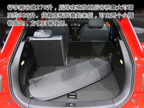 在行李厢方面,奥迪同样没有降低高品质标准。奥迪A1的行李厢容量270升,后排座椅放倒后容积最大可增至约920升?;跸涞装逭鄣鹄春螅捎闪礁鲂〔逑潭?,方便日常使用。此外,行李厢门可以通过??卦砍椎确绞绞迪值缍簦允境霭碌螦1纯高档品质。此外,在行李厢底板下设有实用的储物箱、带有折钩的多固定点、拉伸网、电源插座、备用灯等。