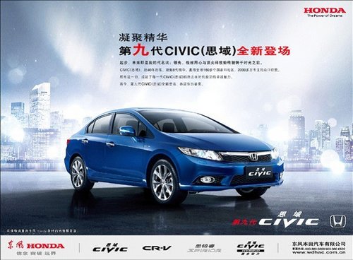 第九代CIVIC(思域)延续了第八代产品精致融汇的特点,并以先进技术为基础进行了自内而外的全面革新,针对80后消费者的需求,强化了科技智能的产品特征。