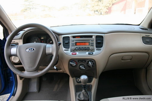 RIO锐欧的内饰设计简约精良,深浅的双色调以及类钛金属饰板营造出明亮的感觉,加上全车皮质与绒面相间的座椅衬托,整体散发出大方素雅的视觉感受。双环仪表板采用LED冷光灯,数据清晰易读;质感上等的中控台按键排列规整,操作十分方便。车内的储物空间也非常充裕,杯架、太阳镜架等一应俱全。后座椅还可视乘载情况4/6分离或向前放倒,调配出合适的载物空间。