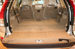 在内部空间上,由于驾驶舱前移,使得xc90内部空间异??沓?。其座椅布置和设计完全体现驾驶性和实用性理念:前排大尺寸桶型双座俨然一副“商务舱”等级,均可以8向电动调整。中排座椅采纳40/20/40分离式布置,有将近100 mm的前后位移量。后排双座只适合小个子或小孩(假如你选择了七人座车型),同样采用分离式。这些保证了所有的驾乘者都能找到最舒适的驾乘姿态。