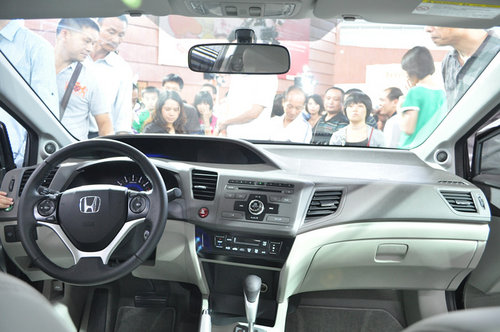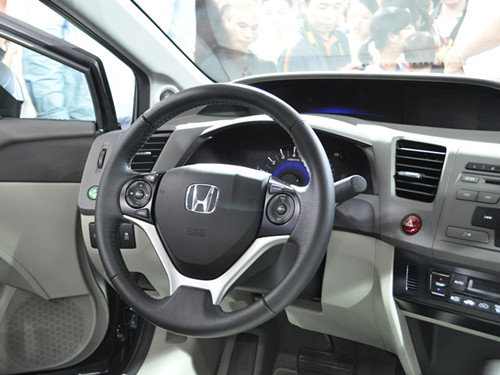 内饰方面,第九代思域采用了全新的内饰造型设计。相比现款车型,新车在音响面板的布局设计上变化较为明显,同时,位于音响面板的液晶显示屏更换为一个更大尺寸的彩色液晶显示屏,并且布置在上层仪表台的右侧位置。另外,第九代思域的方向盘造型也发生了改变,在视觉上更具动感,当中的多功能按键依然存在。高配车型的中控面板上还镶嵌着一块大尺寸液晶显示器,主要负责导航信息,可以手指触摸操作,集成了可视倒车影像和DVD功能。