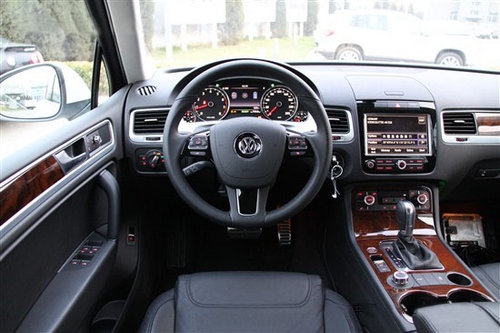 新途锐的车厢非常有质感,中控台采用三种材质组合,手工和用料都一流,让人挑不出毛病。仪表盘设计精致,大方清晰的白色背光灯,液晶显示屏清晰度大大提高,能显示车辆信息、导航信息以及印象信息,可读性非常好。感觉像是艺术品,很好地体现出其豪华身价。