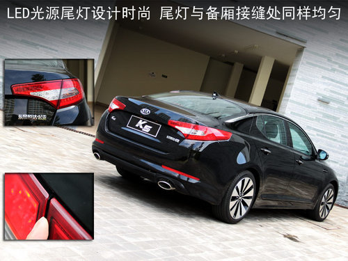 东风悦达起亚K5的车身尺寸为4845mm x 1830mm x 1460mm,轴距为2795mm。外观依旧由彼得•希瑞尔操刀设计,虎啸式进气格栅犀利威猛,倾斜的后窗线条与上扬的动感腰线完美汇合,加上略显精练稳重的轿跑式车尾,使整车充满了强劲的运动感。此外,K5 2.0L车型采用的是单排气设计,2.4L车型采用了左右对称的双出排气。