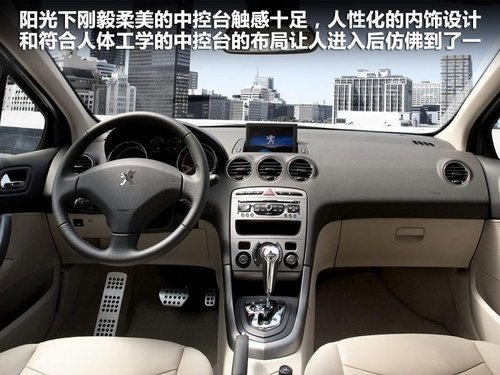 阳光下刚毅柔美的中控台触感十足,人性化的内饰设计和符合人体工学的中控台的布局让人进入后仿佛到了一个静谧的世界。东风标致408拥有多达6处的 安全气囊及气帘,全方位呵护了驾驶员及乘客的安全,经过全新调校的CVTS-II发动机配以技术变速箱,在满足时下对节能环保的高水准要求的基础 上,赋予了408一颗从容驰骋的心。而其所倡导的“6+X安全理念”打造了东风标致独有的安全体系,更让每一位车内乘客坐拥悠然驾驭的从容境界。