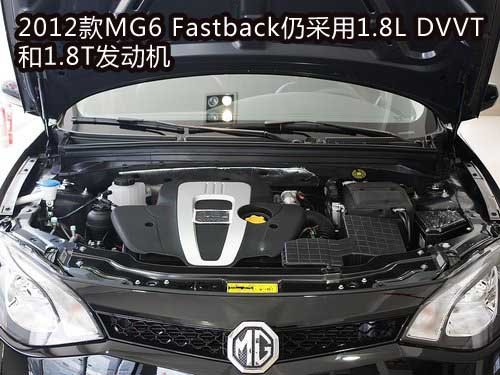 2012款MG6 Fastback仍采用1.8L DVVT和1.8T发动机,前者采用进排气双连续可变气门正时技术,最大输出为98kw和170Nm;后者为1.8T Kavachi涡轮增压发动机,最大输出为118kW和215Nm。传动方面,仍采用5挡手动和Tiptronic 5挡手自一体变速器。