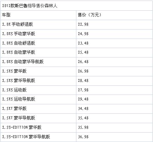 24.98万元起 斯巴鲁2.5L森林人全新上市