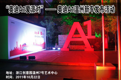 2011年10月22日,温州地区奥迪经销商:温州瓯通奥迪、温州联奥奥迪、乐清红源奥迪、瑞安华能奥迪携手在温州7号艺术中心举行了“奥迪A1爱派对”——奥迪A1温州新车发布活动。