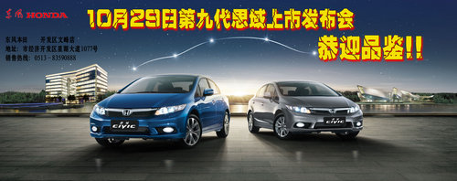 网上车市记者从东风Honda南通文峰店了解到,第九代CIVIC(思域)于10月24日已经到店,感兴趣的朋友可以去店看看,10月29日店内举行上市发布会,恭迎品鉴?。〉诰糯鶦IVIC(思域)被认为是凝聚CIVIC八代精华的车型,作为一款对中级车市场举足轻重的车型,关于其上市后的市场预测也成为业内的热点话题。