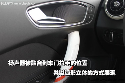 在A1车内我们可以发现许多出众的设计细节,例如扬声器被融合到车门拉手的位置,并以弧形立体的方式展现。车内阅读灯也采用了当下流行的LED光源,白色灯光在夜间更加突显科技感。