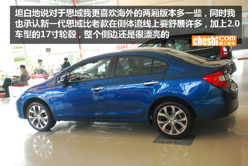 就外观上来说,相比日系的马三与星骋,新老骐达,思域的这次换代从外部看变化不大,第九代1.8车型的进气孔部分由蜂窝网状变成了横条格栅,而2.0车型则依旧为网状的格栅。作为偏向运动的代表,2.0车型的出现一来丰富了产品线,满足了部分渴望动力的人们的需要;二来为两厢思域的引进,做足铺垫。