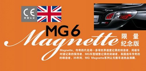 在它之前,从来没有一个名字,可以让无数车迷如此热血沸腾。35年间,MG6 Magnette 系列,不断谱写自己的辉煌:多项世界速度记录的创造者,同级车中时速记录的保持者,MG车型销售记录的突破者,英国造车创奇的缔造者。从此成为竞速传奇的代名词,编织起历代车迷的终极梦想。现今,MG6 Saloon Magnette臻藏上市,挚爱回归,风潮再起。