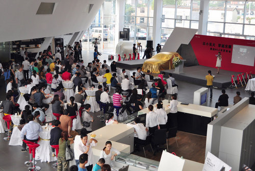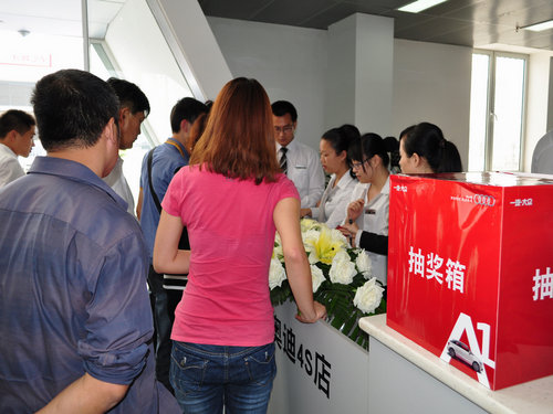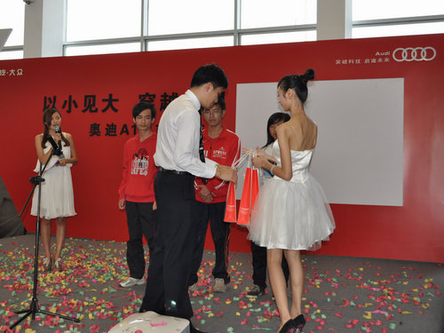 在轻松舒畅的音乐声中,本站采编随其他受邀嘉宾进入柳州合隆店。展厅里,有丰富美味的西式精点,有激情四射的助兴乐队。在柳州合隆店销售总监的致辞中,活动拉开了序幕。一部非常具有时尚气息的奥迪A1的宣传短片过后,奥迪A1现场揭幕使得活动达到高潮,当销售总监和第一个购买奥迪A1的车主共同揭开披在展车上的幕布时,现场的嘉宾都纷纷站起涌向前台,翘盼已久的奥迪A1,离我们只有一步之遥,此刻的人们激情澎湃,只因奥迪A1,小也有大来头。请随我们的镜头共同见证这一历史时刻: