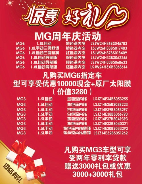 大连吉鑫MG周年庆尽享大幅度优惠送礼包